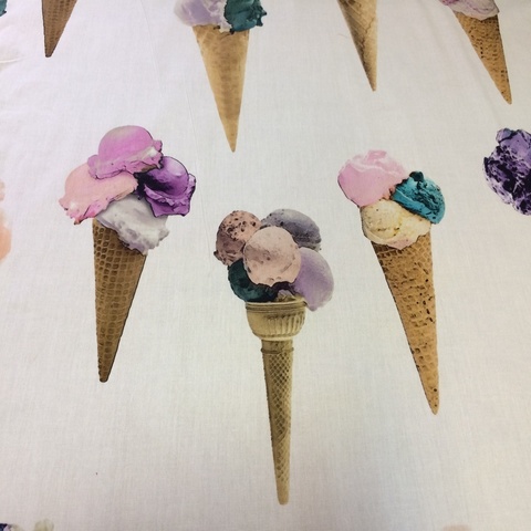 Ткань хлопок поплин. Принт большие рожки с мороженым на белом фоне. Реплика Dolce Gabbana. Подходит для платьев, сарафанов, юбок, костюмов, топов. Не просвечивает, можно без подклада. Италия. Состав 100% хлопок. Допускается небольшое отклонение цветопередачи. Дополнительные фото и видео по запросу.