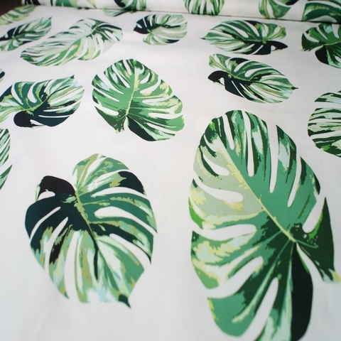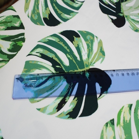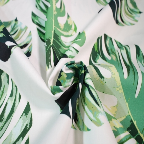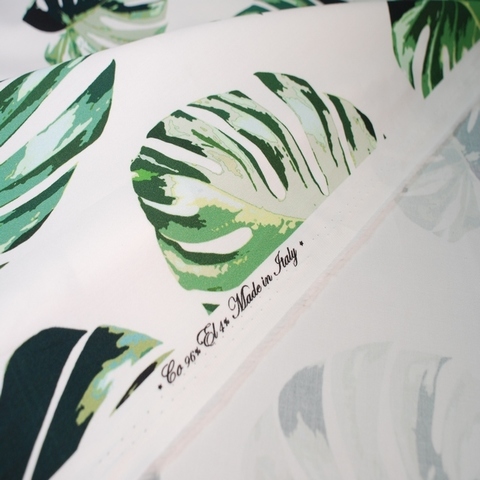 Ткань хлопок Линия Max Mara. Средняя плотность. Белый цвет с зелеными пальмовыми листьями. Хлопок формоустойчивый. Подходит для брюк, юбок платьев. сарафанов, топов. Не просвечивает, можно без подклада. Италия. Состав 100% хлопок. Допускается небольшое отклонение цветопередачи. Дополнительные фото и видео по запросу.