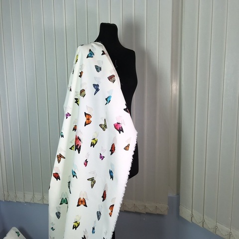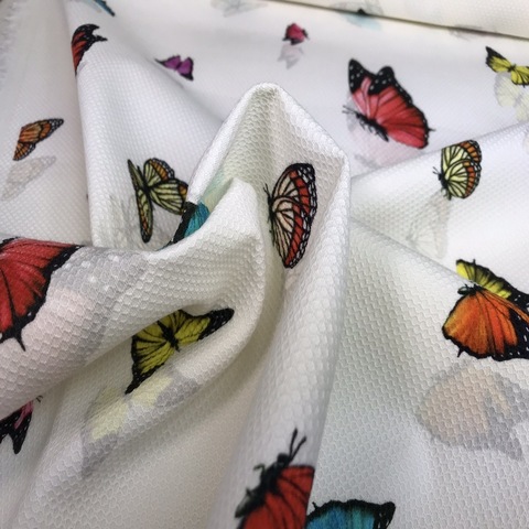 Ткань хлопок пике с эластаном Alta Moda. Принт: бабочки с эффектом отражения на белом фоне. Подходит для пошива платья, юбки, костюма или рубашки. Формоустойчивая, немного плотная фактура. Хлопок 97%, эластан 3%. Ширина 136 см. Производитель Италия. Допускается небольшое отклонение цветопередачи. Дополнительные фото и видео по запросу.
