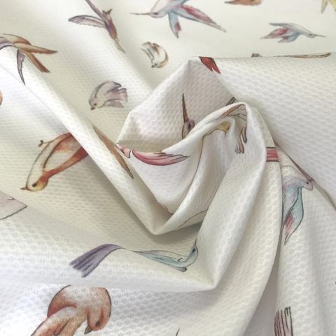 Ткань хлопок пике с эластаном. Принт птицы на белом фоне. Формоустойчивый хлопок. Подходит для брюк, юбок, платьев, сарафанов, топов. Не просвечивает, можно без подклада. Италия. Состав 97% хлопок, 3% эластан. Допускается небольшое отклоненение цветопередачи. Дополнительные фото и видео по запросу.