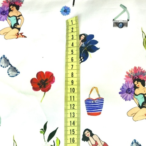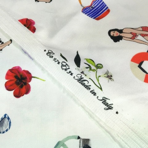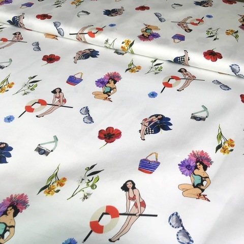 Ткань хлопок сатин с эластаном Alta Moda. Принт: девушки Pin Ap на белом фоне. Подходит для пошива платья, юбки, костюма или рубашки. Формоустойчивая фактура. Хлопок 97%, эластан 3%. Ширина 136 см. Производитель Италия. Допускается небольшое отклонение цветопередачи. Дополнительные фото и видео по запросу.