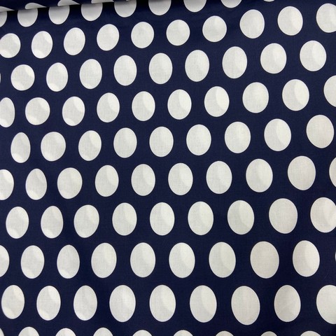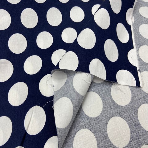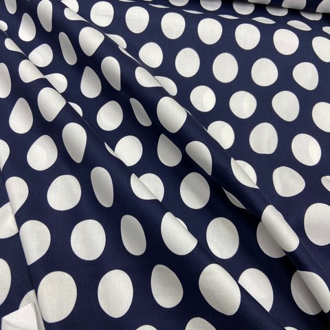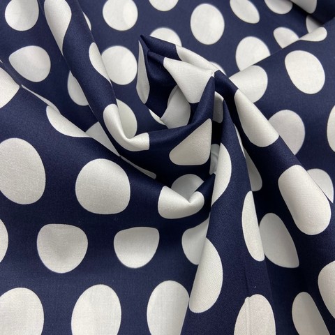 Ткань хлопок с эластаном. Принт крупный горох около см на темно-синем фоне. Формоустойчивый, средней плотности хлопок. Подходит для брюк, юбок, платьев, сарафанов, топов. Не просвечивает, можно без подклада. Италия. Состав 97 % хлопок, 3% эластана. Ширина 135 см. Допускается небольшое отклоненение цветопередачи. Дополнительные фото и видео по запросу.