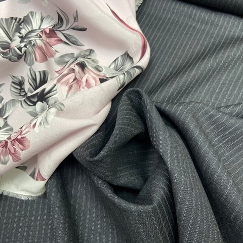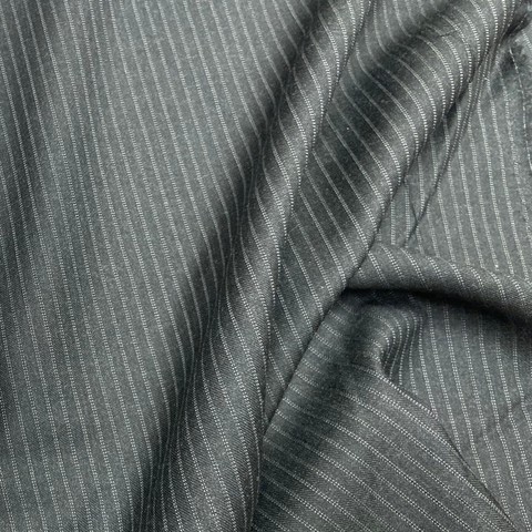 Ткань итальянская костюмная темно-серая в полоску. Подходит для пошива классических костюмов, платьев, юбок, жакетов, шорт. Допускается небольшое отклонение цветопередачи. Дополнительные фото и видео по запросу. Ткань приятная на ощупь и к телу, не колет, высокое качество. Ширина 145 +/-см. Шерсть 100 %.