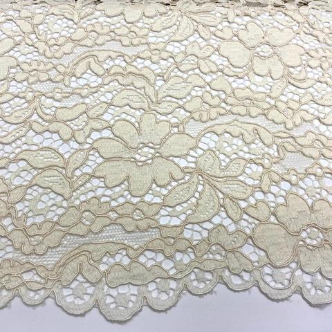 Ткань кружево кордовое. Фестон с одной стороны. Цвет благородный зеленый. Для пошива платья, костюма, юбки, жакета, кардигана. Италия. Состав 46% вискоза, 39% хлопок, 15% нейлон. Ширина 140 см. Допускается небольшое отклонение цветопередачи. Дополнительные фото и видео по запросу.