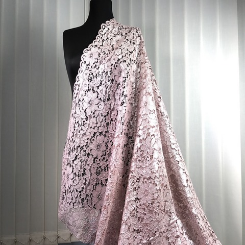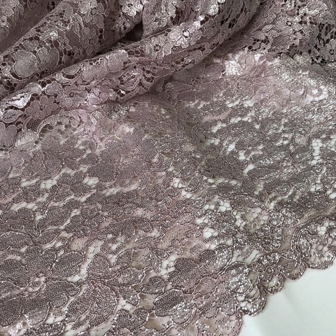 Ткань кружево кордовое. Фестон с одной стороны. Цвет розовый с серебряным напылением. Для пошива платья, костюма, юбки, жакета, кардигана. Италия. Состав 46% вискоза, 39% хлопок, 15% нейлон. Ширина 140 см. Дополнительные фото и видео по запросу.