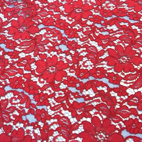 Ткань кружево кордовое цвет красный голубой фон 3294