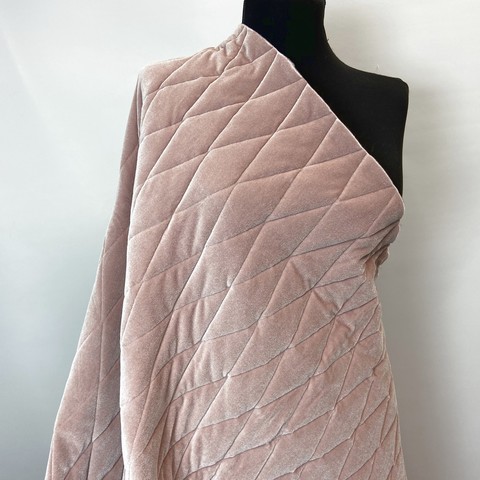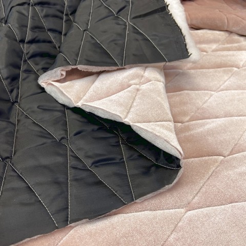 Ткань курточная стеганная. Основа велюровая нежно розового цвета Для пошива куртки, пальто, костюма, юбки, жакета, кардигана. Италия. Состав 100% пэ. Ширина 140 см. Дополнительные фото и видео по запросу.