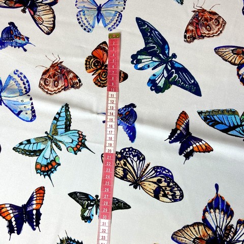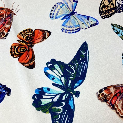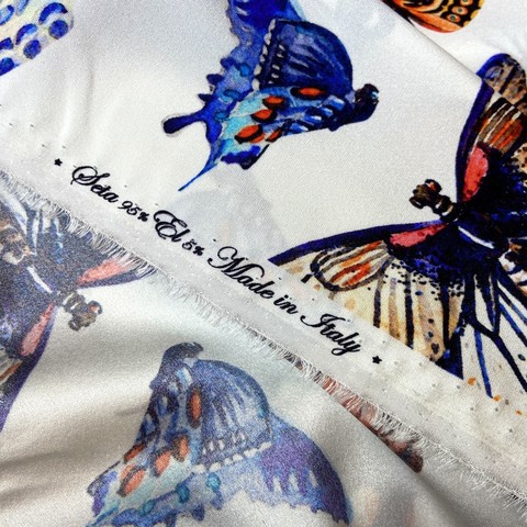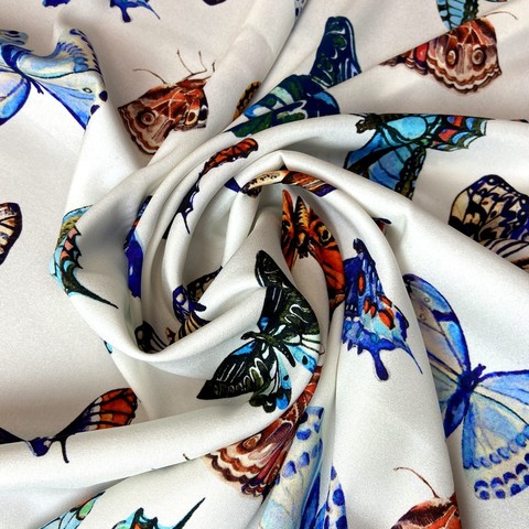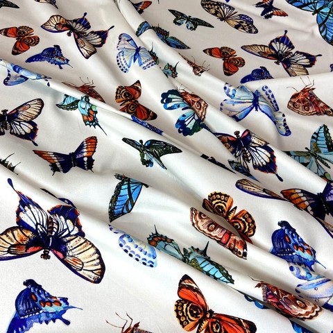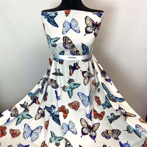 Ткань итальянский матовый шелк белый с бабочками на белом фоне. Реплика Dolce Gabbana . Подходит для платьев, юбок, топов, блузок. Состав 98% шелк, 2% эластан. Ширина 135 см.