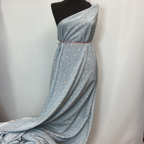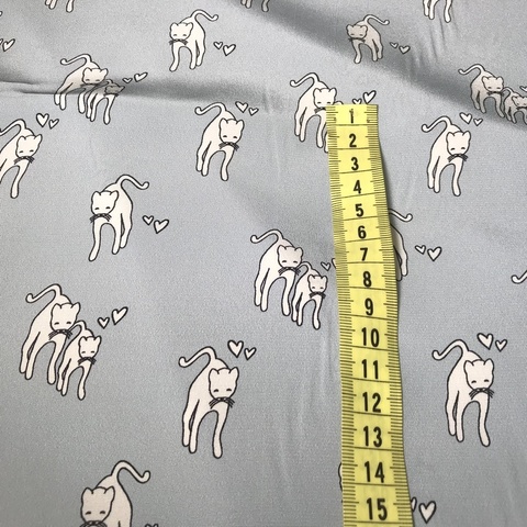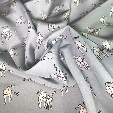 Ткань итальянский шелк крепдешин светло-голубого цвета с кошками. Подходит для платьев, юбок, топов, блузок. Состав 100% шелк. Ширина 135 см.