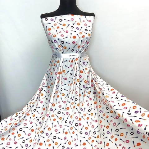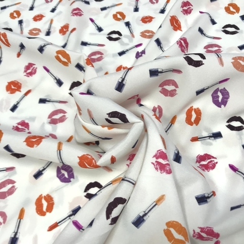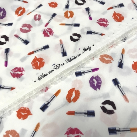 Ткань шелк матовый с эластаном Alta Moda. Принт: помада на светлом фоне. Идеально для пошива блузок, топов, летящих юбок и платьев. Также подходит на красивый подклад. Струящаяся, без блеска фактура. Изнанка атласная. Шелк 97%, эластан 3%. Ширина 136 см. Производитель Италия. Допускается небольшое отклонение цветопередачи. Дополнительные фото и видео по запросу.