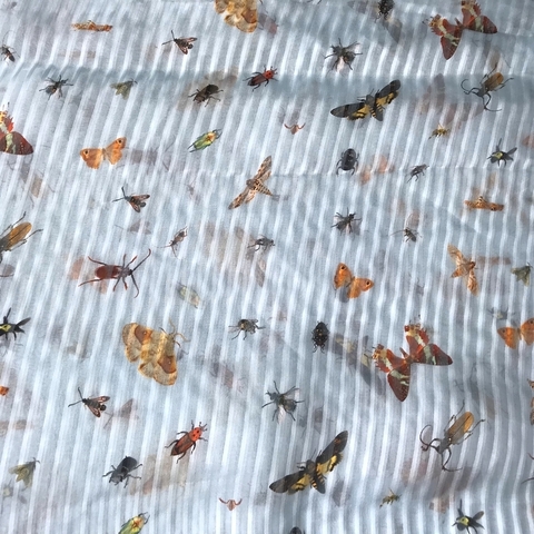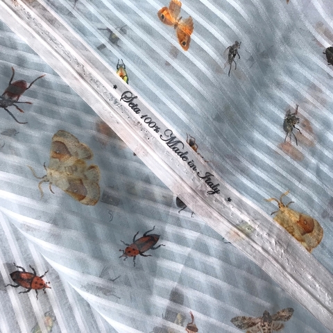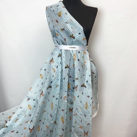Ткань прозрачный шифон шелковый Alta Moda. Принт: мотыльки и насекомые на голубом фоне. Идеально для пошива блузок, топов, юбок и платьев. Упругая фактура с эффектом органзы. Шелк 100%. Ширина 136 см. Производитель Италия. Допускается небольшое отклонение цветопередачи. Дополнительные фото и видео по запросу.