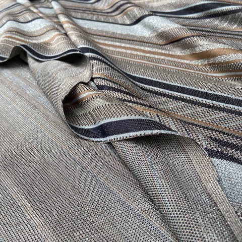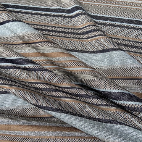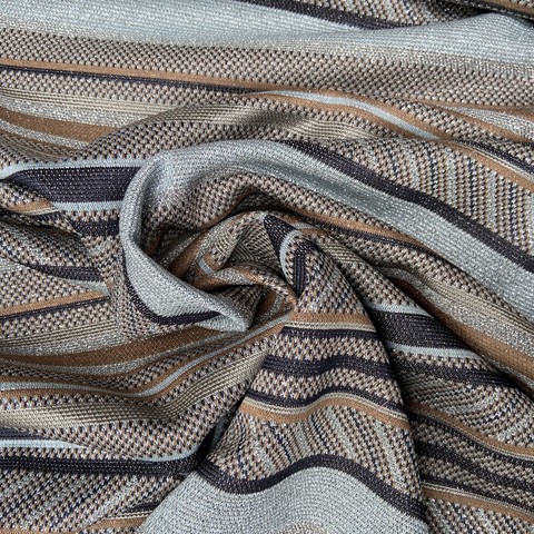 Ткань трикотажная Missoni оригинал. Принт в полоску из бежевого, серого и голубого оттенков с добавлением люрекса. Мягкая, комфортная ткань, средней плотности. Хорошо подходит как для облегающих, так и свободных вещей. На платья, топы, юбки, брюки, кардиганы. Италия. Состав 100 % вискоза. Ширина 135 см. Допускаятся небольшое искажение цвета. Дополнительные фото и видео по запросу.