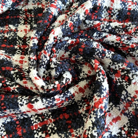 Ткань твид итальянский черного цвета с красными нитями. Не рыхлый, приятный на ощупь. Подходит для пошива костюмов, платьев, юбок, жакетов, шорт. Допускается небольшое отклонение цветопередачи. Дополнительные фото и видео по запросу. Ткань приятная на ощупь и к телу, не колет, высокое качество. Ширина 130 см. Состав: 75% vi, 15 ac, 10 me.