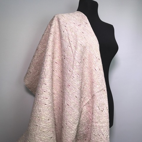 Ткань твид с органзой с розовой нитью. Очень эффектная ткань. На костюмы, пиджаки, юбки, платья, пальто. Италия. Ширина 145 +/- см. Состав 46%PA 39%CO 9%VI 6%PL.