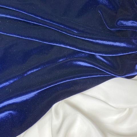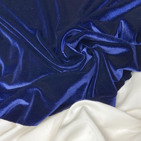 Ткань велюр синий стрейч. На платья, костюмы, пижамы, топы. Ширина 140 см.