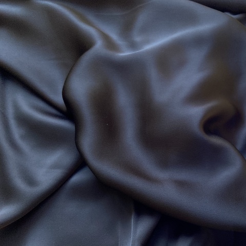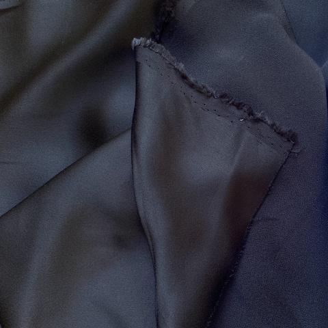 Ткань костюмно-плательная кади. Черный цвет.  Одна сторона креповая, другая атласная с мягким блеском.  Плотная структура. Драпируется в красивые складки. Для пошива платьев, блуз, юбок, сарафанов, костюмов. Италия. Состав 73% ацетат, 27% вискоза. Ширина 140 см. Допускается небольшое отклонение цветопередачи. Дополнительные фото и видео по запросу.