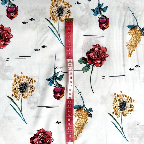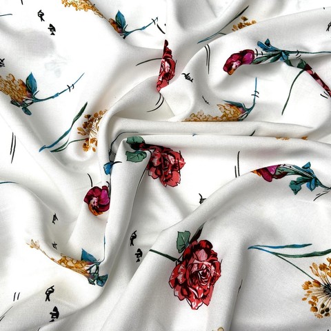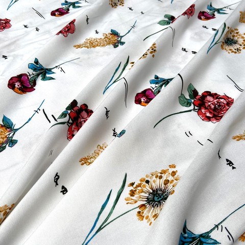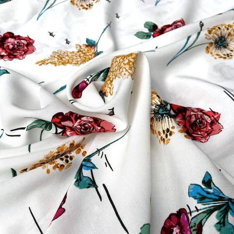 Ткань вискоза с красными цветами на белом фоне. Тонкая, легкая вискоза.Для пошива платьев, блуз, юбок, сарафанов, костюмов. Италия. Состав 100% вискоза. Ширина 140 см. Допускается небольшое отклонение цветопередачи. Дополнительные фото и видео по запросу.