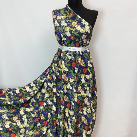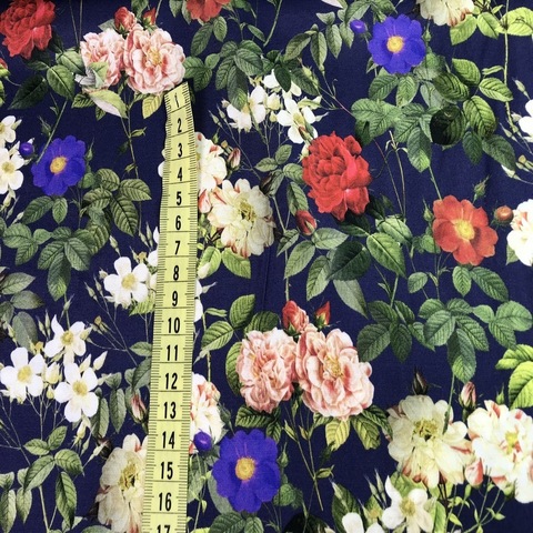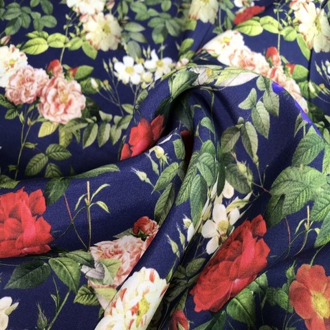 Ткань вискоза плательная. Принт небольшие розочки на синем фоне. Гладкая, легко драпирующаяся фактура. Для пошива платьев, блуз, юбок, сарафанов, костюмов. Походит для оборок и валанов. Комфортная к телу. Италия. Состав 100% вискоза. Ширина 140 см. Допускается небольшое отклонение цветопередачи. Дополнительные фото и видео по запросу.