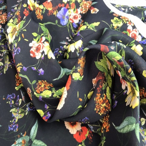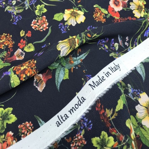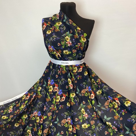 Ткань вискоза плательная с эластаном. Мелкие желтые цветы на синем фоне. Для пошива платьев, блуз, юбок, сарафанов, костюмов. Походит для оборок и валанов. Комфортная к телу. Италия. Состав 100% вискоза. Ширина 140 см. Допускается небольшое отклонение цветопередачи. Дополнительные фото и видео по запросу.
