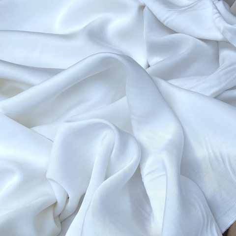 Ткань тенсел цвета айвори. Легкая, дышащая, почти не мнущаяся ткань. Тенсел изготавливается из древесины эвкалипта. Для пошива платьев, блуз, юбок, сарафанов. Италия. Состав 100% тенсел. Ширина 140 см. Допускается небольшое отклонение цветопередачи. Дополнительные фото и видео по запросу.