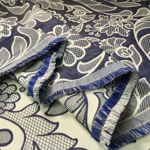 Ткань двусторонний жаккард Valentino. Цветочный принт в сине-белых тонах. Идеально для пошива жакета, платья, костюма, юбки, легкого пальто. Формоустойчивая, средне-плотная фактура. Состав смешанный. Ширина 136 см. Производитель Италия. Допускается небольшое отклонение цветопередачи. Дополнительные фото и видео по запросу.